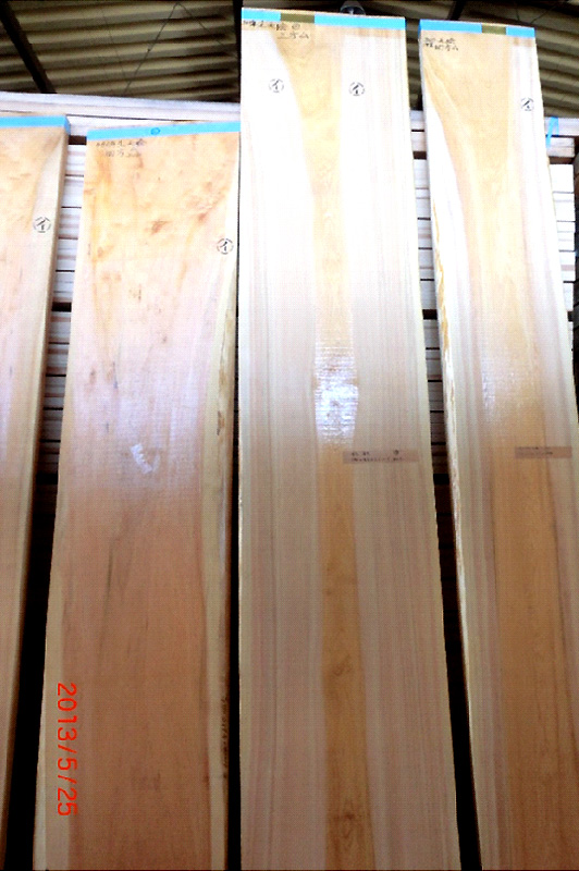 | 「木の価値は樹齢に比例する」をモットーとして事業を展開しています。仕入れる丸太は樹齢100年を超えるスギやヒノキの高樹齢材で、その2番玉や3番玉の中目クラスまでのスギ丸太から挽く、年輪のぎっしり詰まった4寸角の構造材が同社の主力商品です。その他、大径木からテーブルやカウンター用の幅広の盤も挽いており、樹種も銀杏、楠、栃、高野槙、欅などの取扱も可能です。 |